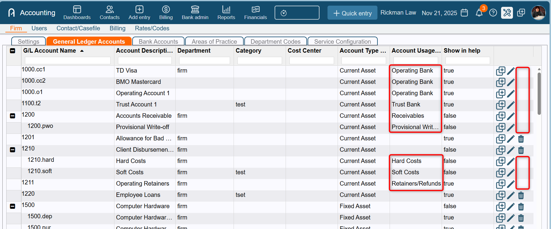 check the list of accounts by going to Admin > Firm > General Ledger Accounts.