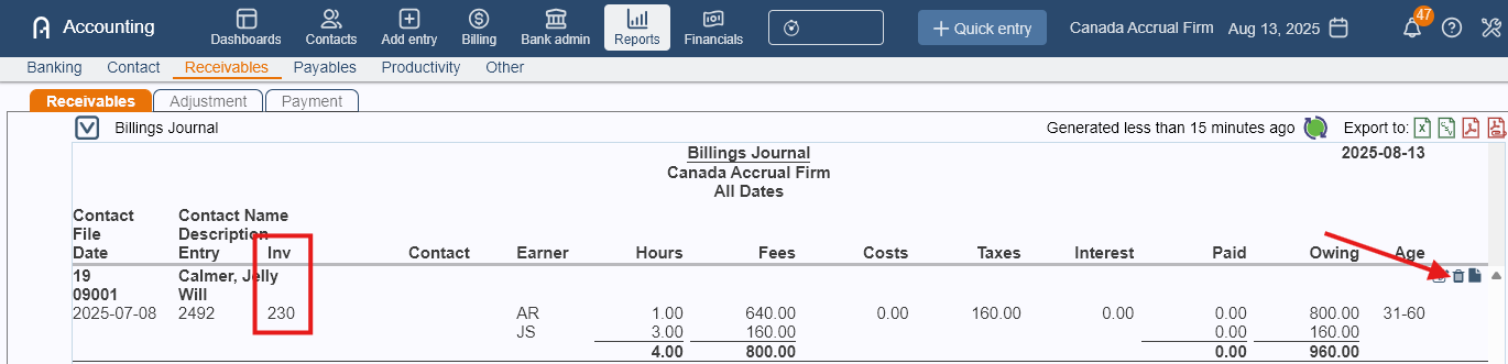Option 2: Delete from the Billings Journal (Recommended for Multiple Invoices)