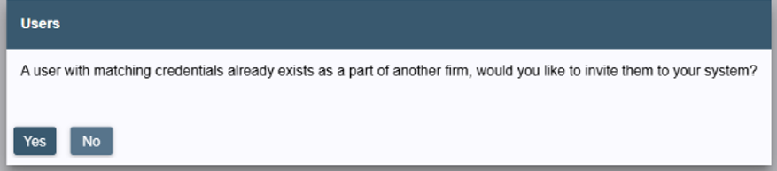 - The system will detect that the email already exists in Legal Accounting database and will ask if you want to send them an invitation to have access to your books, click Yes to proceed.
