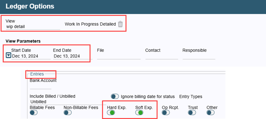 - Run a Work in Progress Detailed report located at Reports > Contact > Ledger > wip detail for that specific date. It is also recommended to only include Hard and Soft Expenses to keep the report as brief as possible.