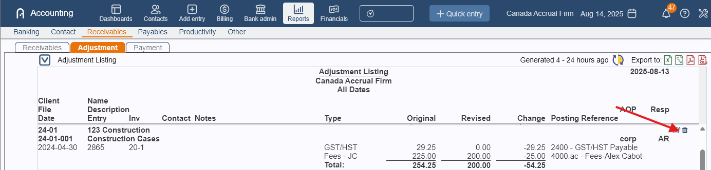 NOTE: If you need to delete multiple adjustments on different files, you can do it from Adjustment Listing as well, simply set the report parameters covering the adjustments made and leave the File field blank.